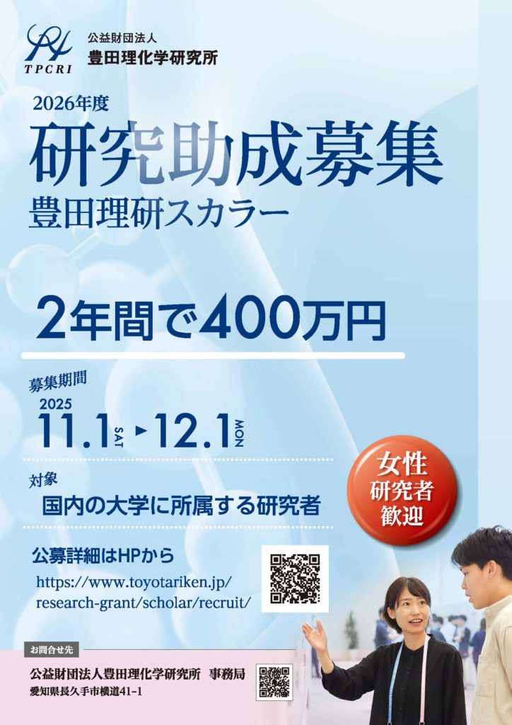 2025年11月1日より豊田理研スカラーの公募受付を開始しました。